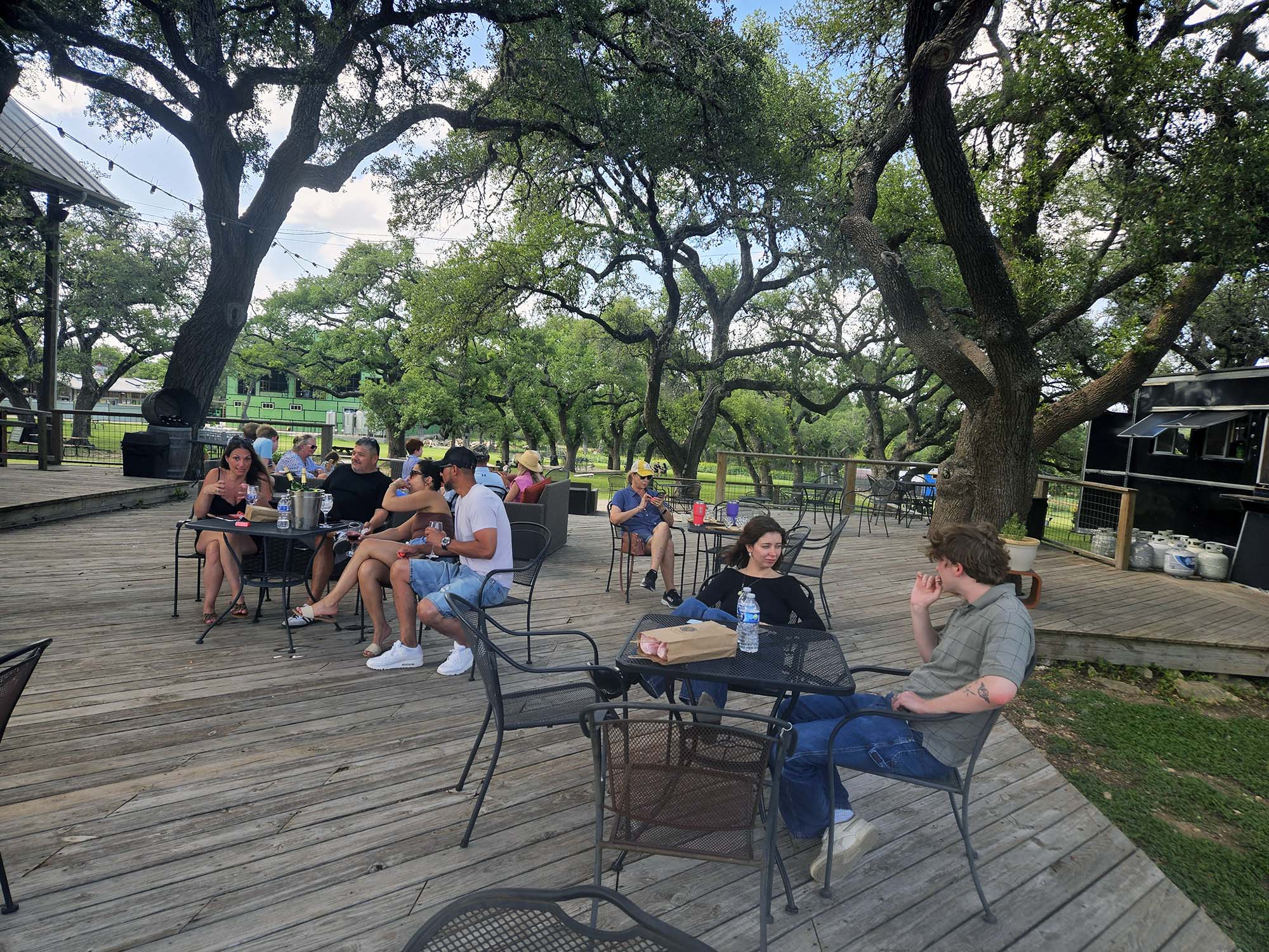 The Wimberley Valley Winery and Lone Man Mountain Brewing Co. are family- and dog-friendly. On-site food trucks provide various culinary options, such as wood-fired pizzas, burgers, sandwiches, and salads.
