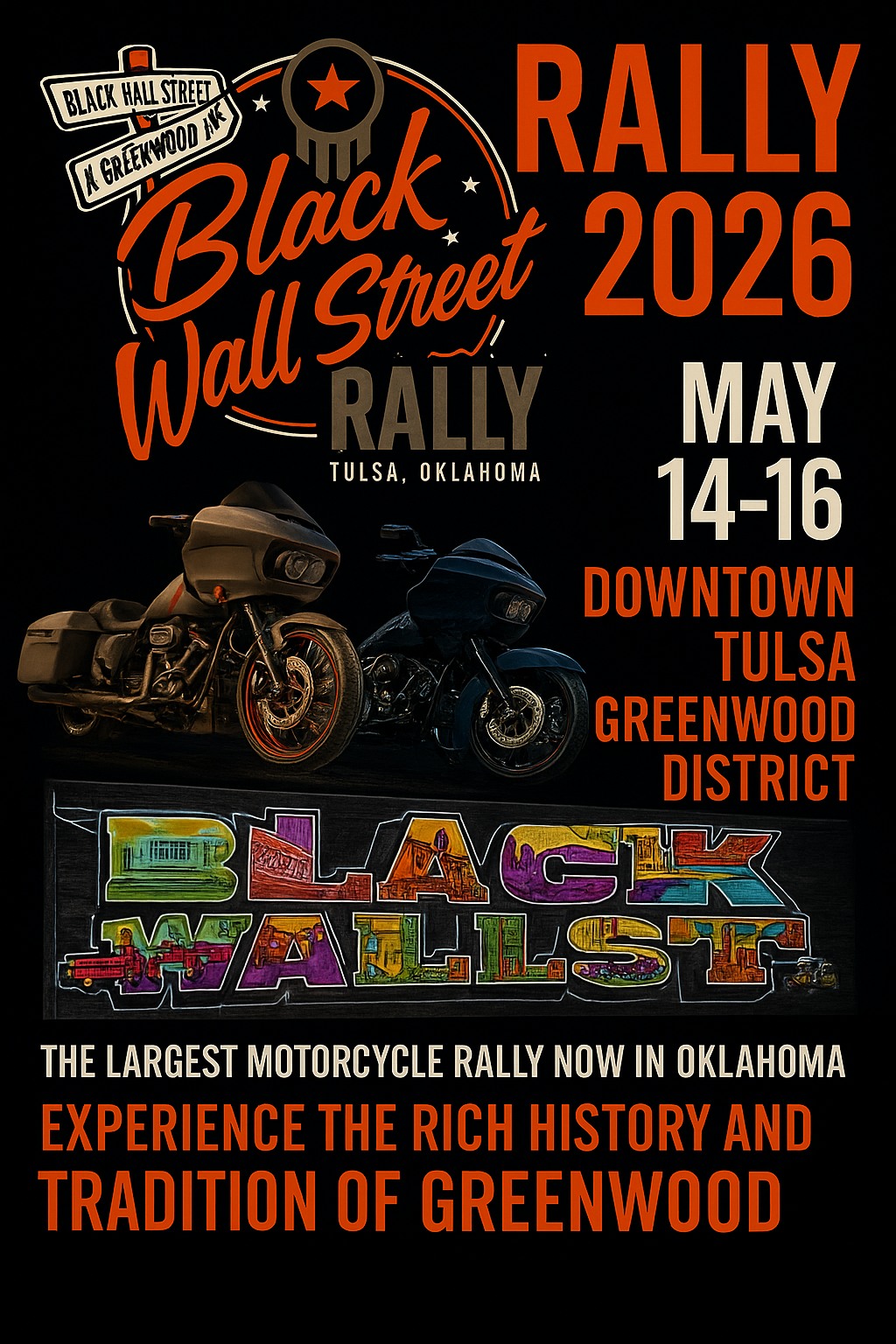 Black Wall Street Rally is May 14 to 16, 2026 in the historic Greenwood District of Tulsa, Oklahoma.