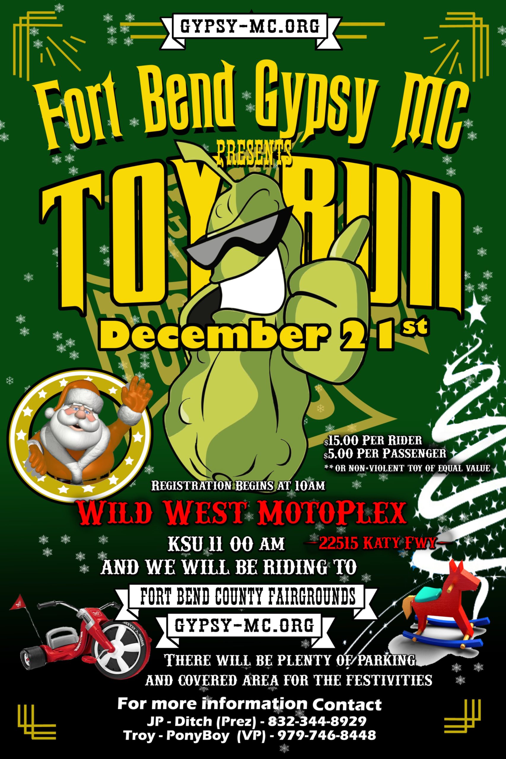 Join the Fort Bent Gypsy MC on December 21, 2025 for their annual Toy Run!