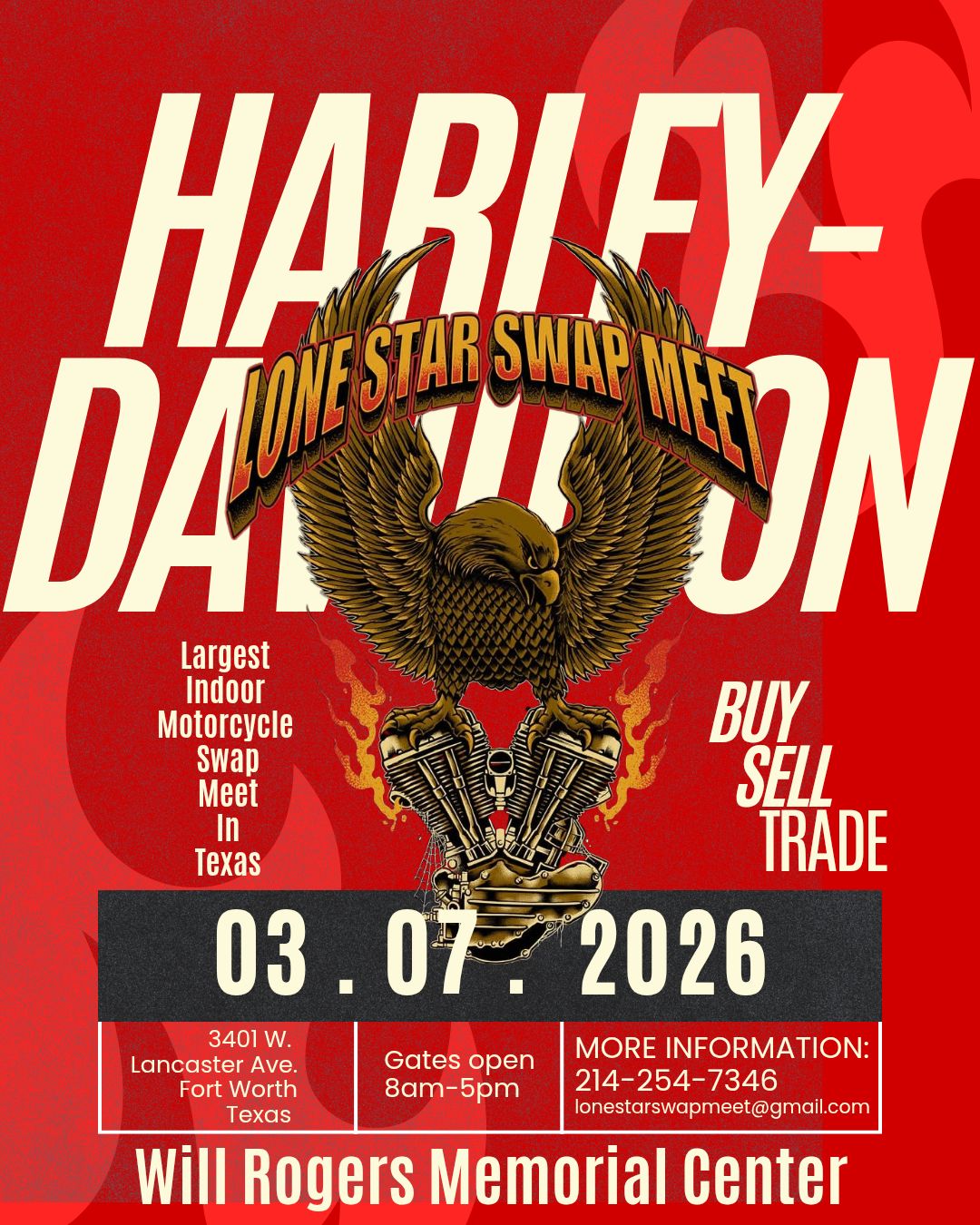 Do not miss Lone Star Swap Meet, the largest indoor motorcycle swap meet in Texas, on March 7, 2025 at Will Rogers Memorial Center in Fort Worth.