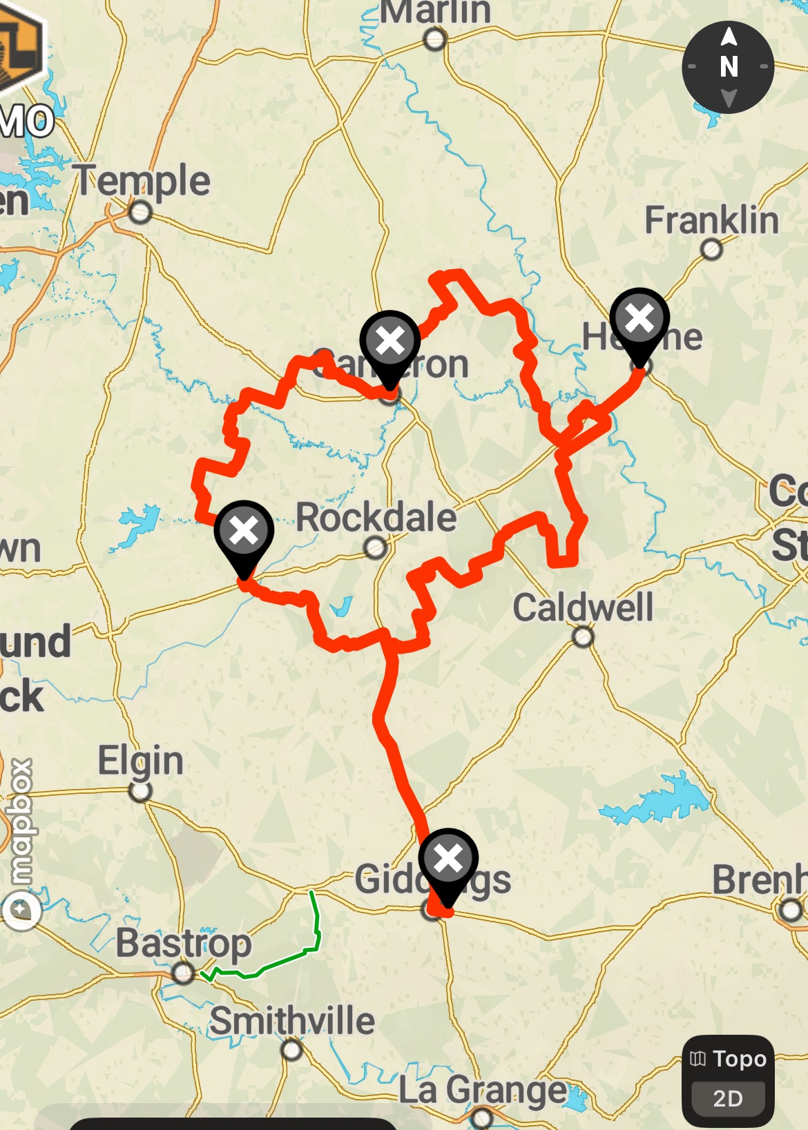 This will be a full-day adventure ride from Giddings through Thorndale, Cameron, Hearne, and back. About 75% of the time will be spent off-pavement.