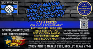 Get your team ready to compete in the 16th Annual Thin Blue Line LEMC Foundation Fajita Cook-Off on Saturday, January 31, 2026