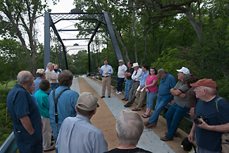 Built in 1885, the span over the East Navidad River was closed in 2010 because of damage to the truss structure. In 2012, a complete restoration that included a fresh coat of paint, new approach spans and new decking was funded through a cooperative agreement with the Federal Bridge Program, TxDOT and Fayette County.