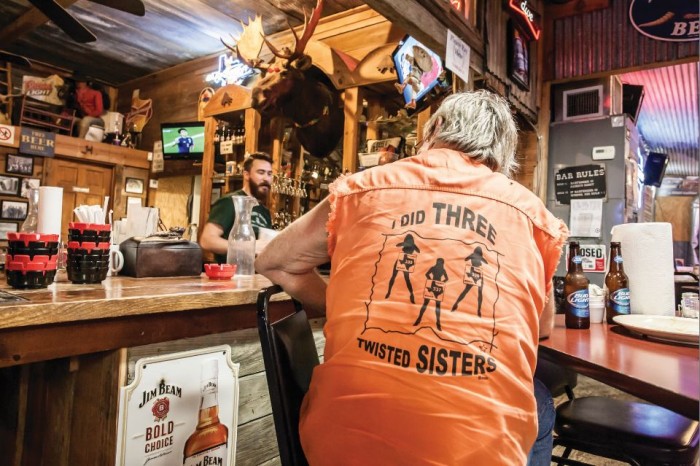 Well, now, we’ve managed to arrive at a biker’s utopia, at least in terms of finding cold refreshment and mighty fine eatin’. Just off FM 219 on the north side of town, the Horney Toad Bar & Grill – which in some ways is rather like an oasis in a desert – is on the right. The number of “dry” counties in the area makes the Horny Toad a mecca for riders wishing to slake their thirst with a nicely chilled adult beverage. But, don’t just stop for a beer. You’ll find the burgers in this place to be top-notch, and there are travelers who make a point of diverting to Cranfills Gap just to nosh on one of these beauties. It’s likely that the moose adorning the bar has a great disposition due to the rose-colored glasses it wears; or perhaps, it’s just the great atmosphere that makes it seem so. Regardless, the Horney Toad is a welcome sight to hungry and thirsty riders.