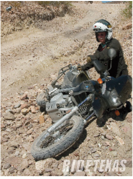 Share Facebook Twitter LinkedIn Pinterest Email Off-road in Big Bend? Be prepared for spending some time rubber side up. Photo by Valerie Asensio. Off-road in Big Bend? Be prepared for spending some time rubber side up. Photo by Valerie Asensio.