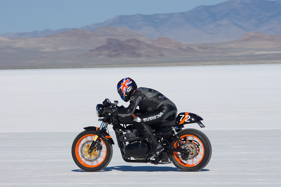 “We’ve been coming to Bonneville since 2007 in preparation for this, the Bonneville model’s 50th birthday year,” said Cathcart. “Breaking the 150 mph barrier with the standard bike was always our main objective, and when the FIM established the new Twin-Cylinder category for Speed Records, it was great that we could claim official World Records by doing so. Matt Capri is a genius when it comes to tuning bikes for the Salt, at 4,400 feet in altitude. To set two more World marks with the Turbo, which he’s developed almost as an afterthought and has spent very little time on, is just the icing on the cake. For sure this is a 180 mph-plus motorcycle with more development in its present naked guise, and with a fairing it’ll go much faster. Maybe we’ll be back next year to try to join the 200 MPH Club with it!”
