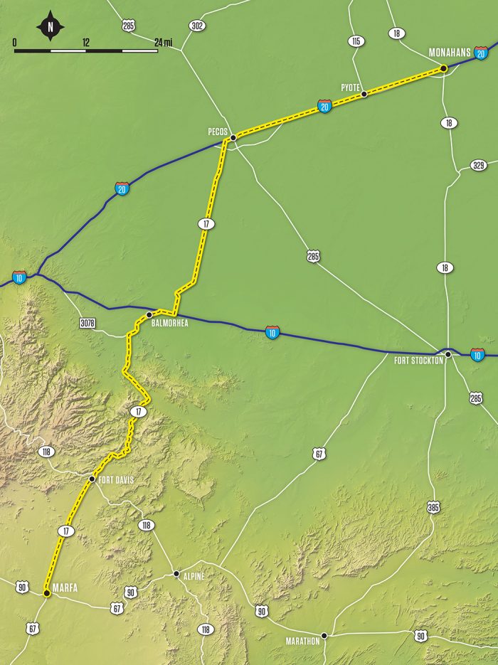 With miles of the state’s most rugged landscape, it’s a no- brainer that West Texas would be the setting for movies about wild men and wild times. Fandango (1985) starred Kevin Costner and a pre-Brat Pack Judd Nelson. The characters were making a spur-of-the-moment run to Mexico (something many readers can relate to) during the uncertainties of the Vietnam era. Locations included Monahans, the Rattlesnake Bomber Range near Pyote, Fort Davis, and Marfa.